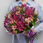 Альстромерия Микс Европа – 15 шт. Дизайнерская упаковка – 2 шт. Открыточка с вашими пожеланиями – 1 шт.