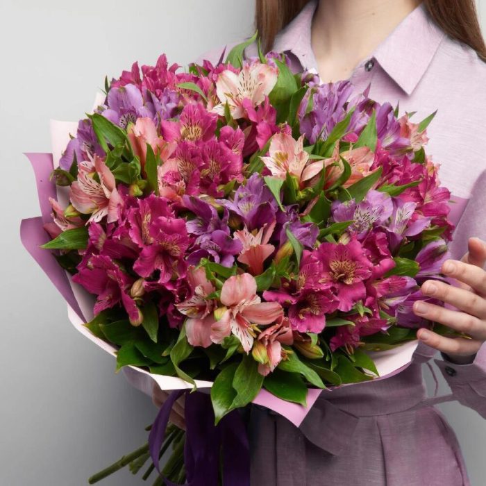 Недорогой, красивый, букет из разных цветов альстромерии с доставкой до двери
