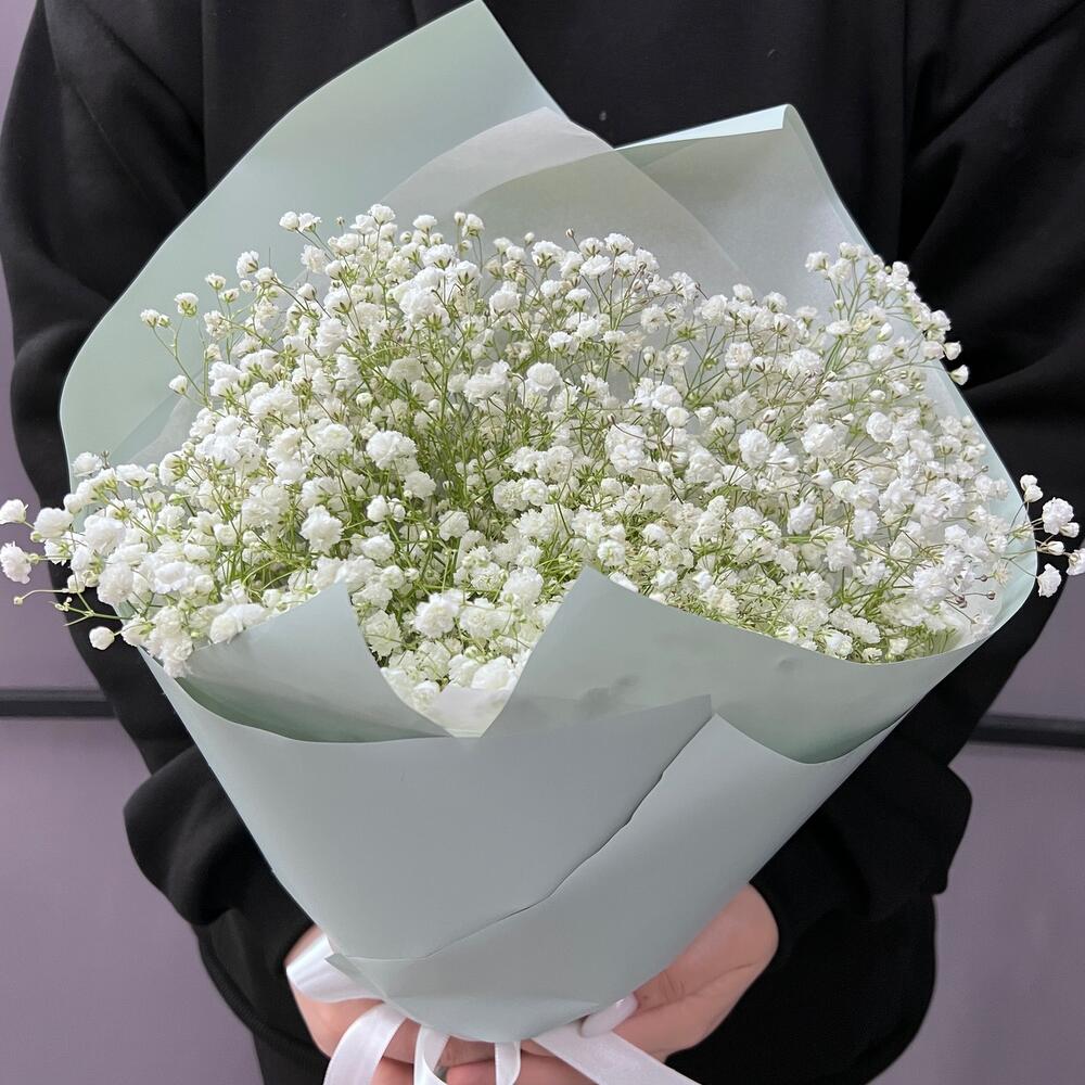 Гипсофила – 5 шт.Лента атласная – 2 шт.Пленка матовая – 5 шт.Тишью – 1 шт.