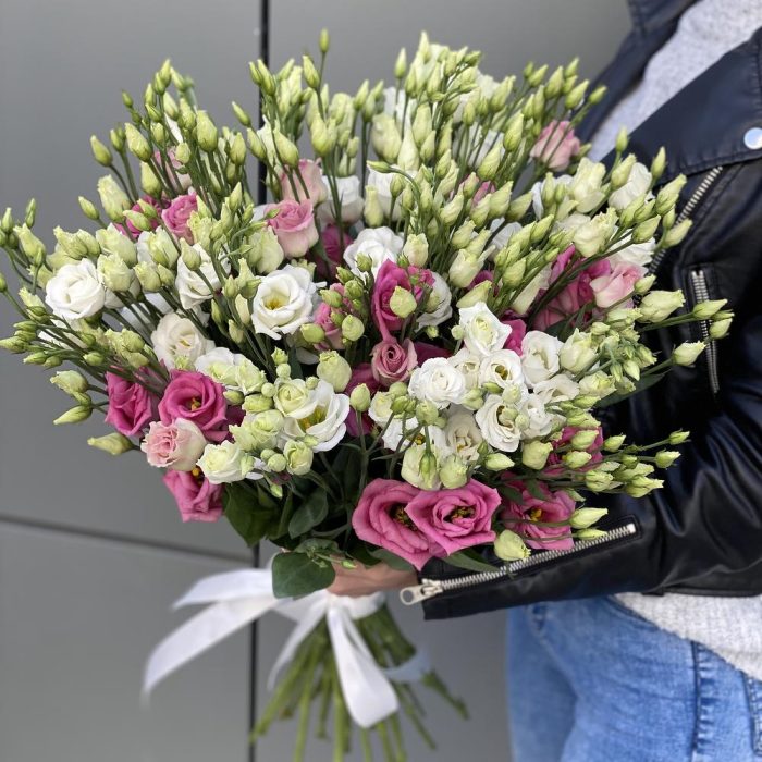 Эустома – 29 шт. Оформление атласная лента – 1 шт.