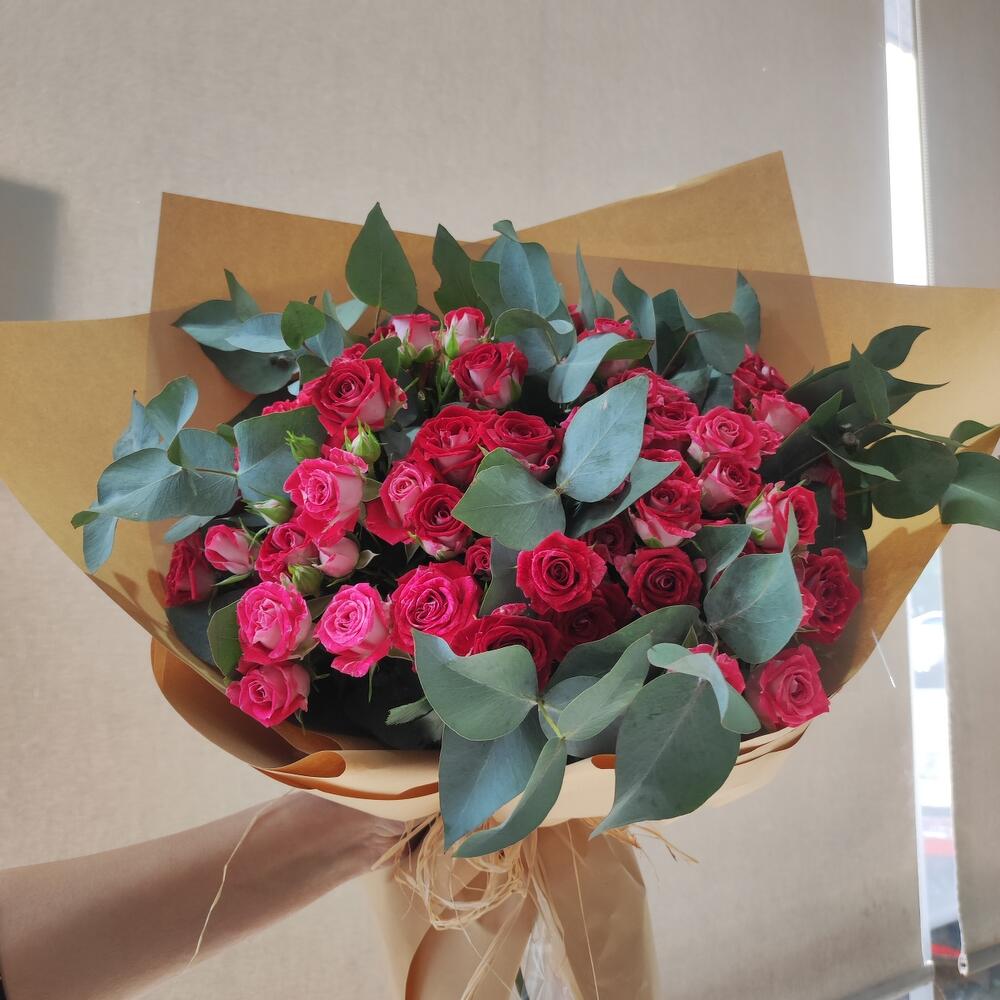 Роза кустовая – 20 шт. Эвкалипт – 10 шт.