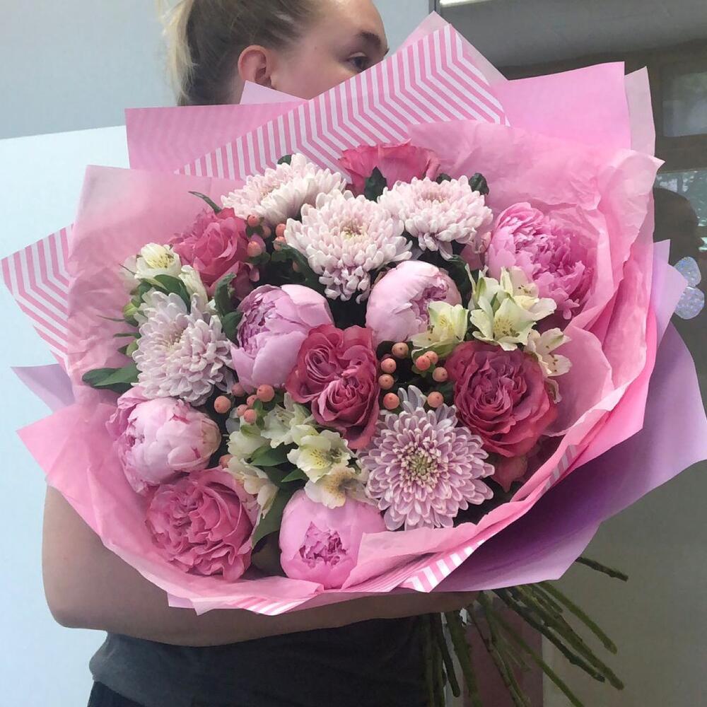 Гвоздики, Кустовые розы, Пионовидные розы, Розы
