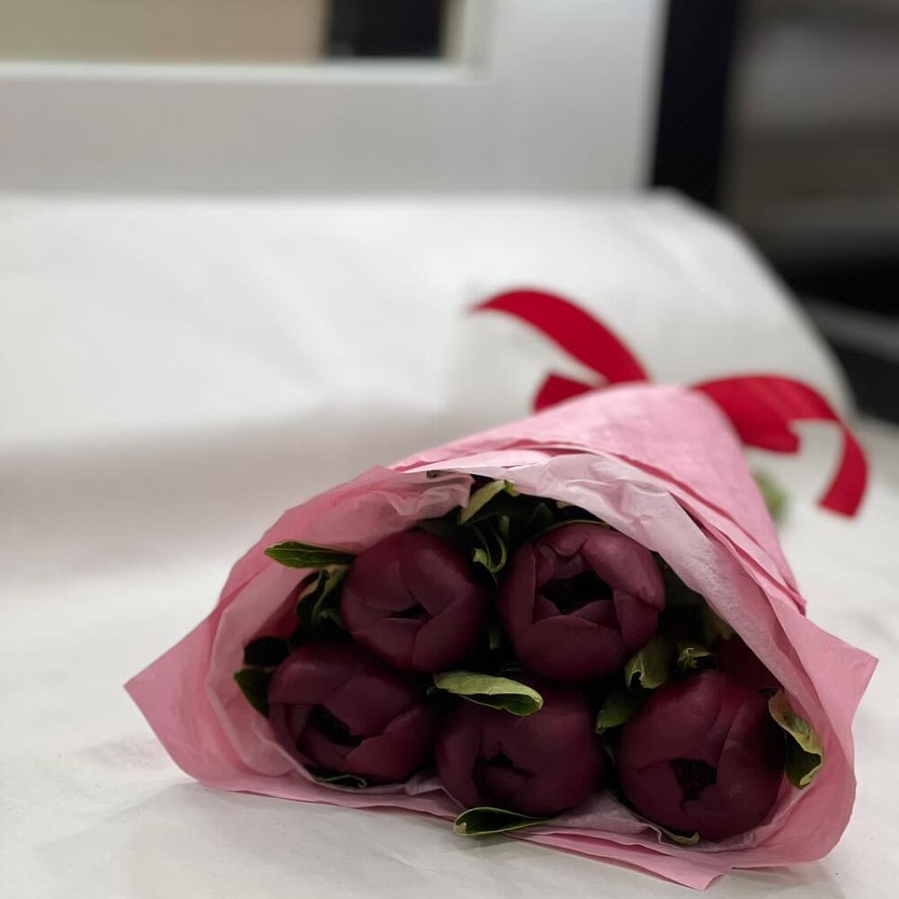 Лента – 1 шт.Пион Ред Шарм – 5 шт.Упаковка – 2 шт.