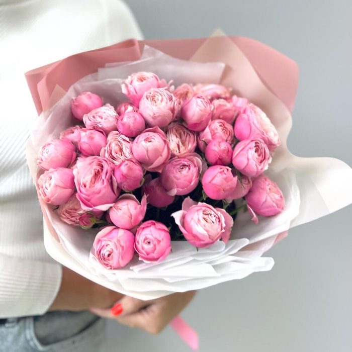 9 кустовых пионовидных роз Сильвия Пинк