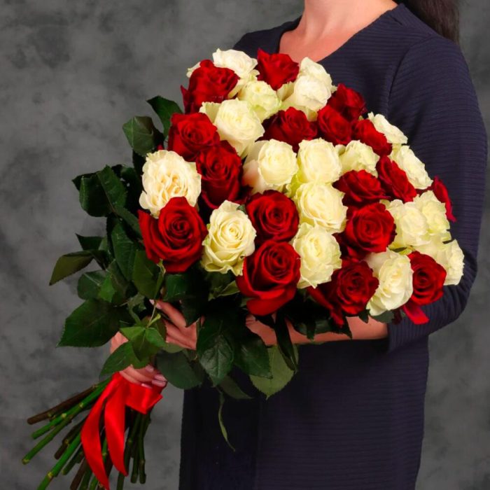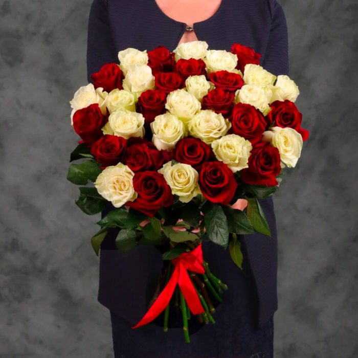 Букет 31 красная и белая роза.