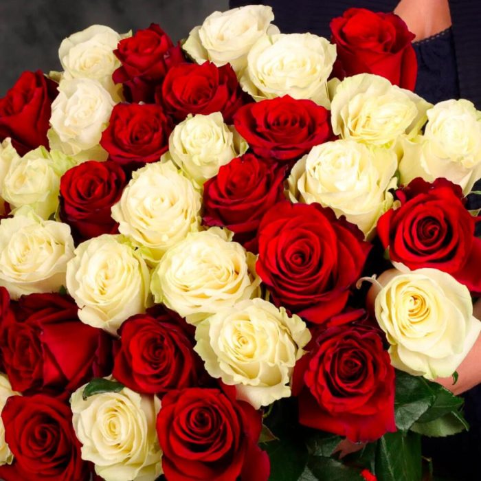 Букет 31 красная и белая роза