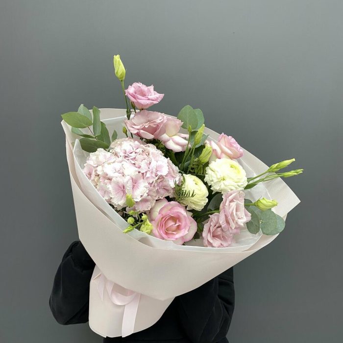 Альстромерии, Кустовые розы, Лизиантусы, Пионовидные розы, Розы, Ромашки