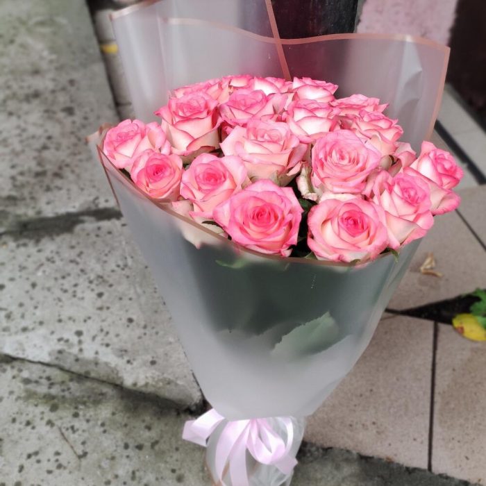 роза украинская сорт джумилия – 19 шт. Упаковка калька флористическая – 1 шт.