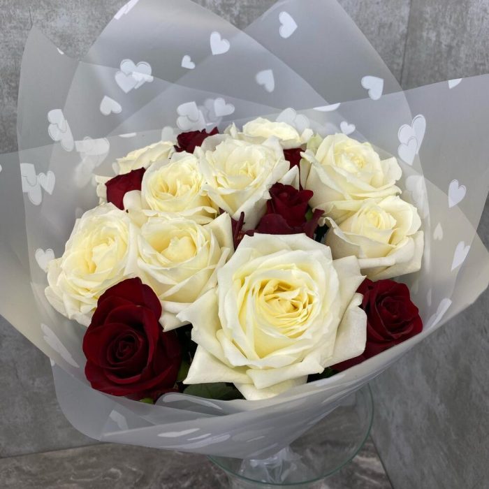 Роза красная – 7 шт.Роза белая – 8 шт.