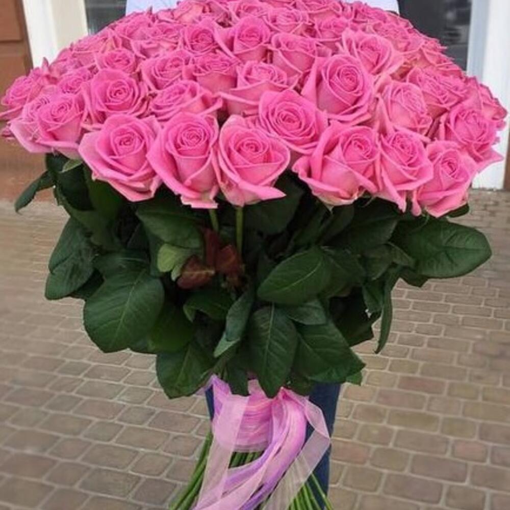 Букет из 75 Розовых Роз 70см Эквадор