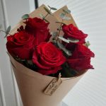 Роза – 5 шт.Эвкалипт – 2 шт.Крафт упаковка – 1 шт.