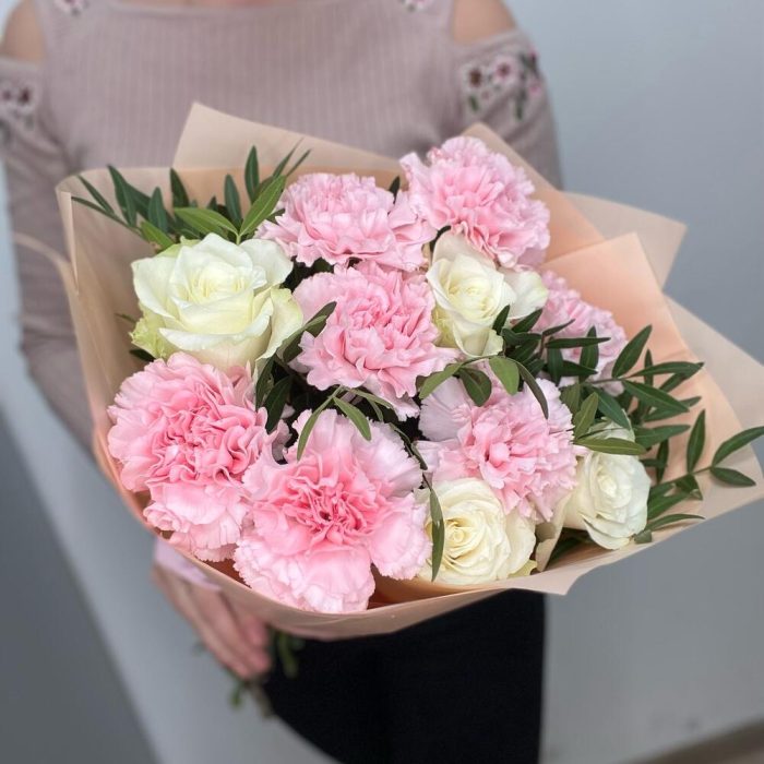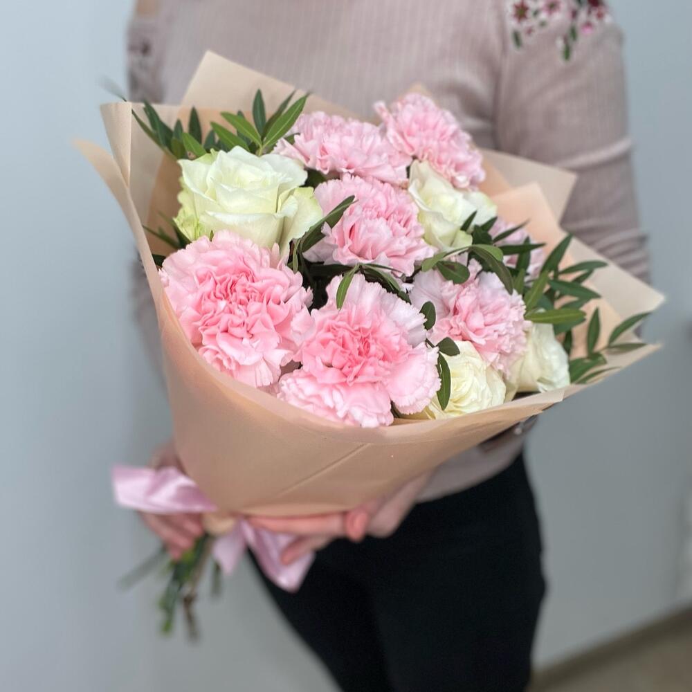 Гвоздики, Кустовые розы, Пионовидные розы, Розы