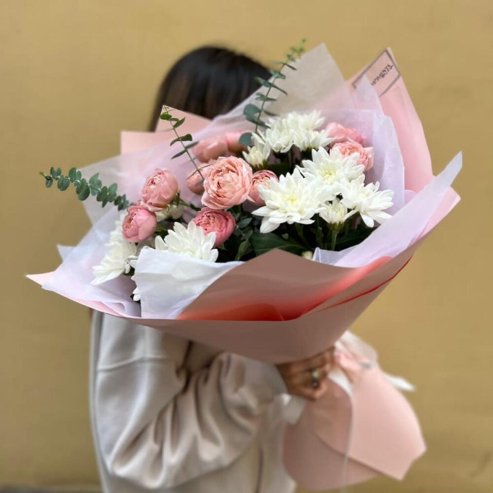 Гвоздики, Кустовые розы, Лизиантусы, Пионовидные розы, Розы
