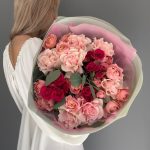 Гвоздики, Кустовые розы, Лизиантусы, Пионовидные розы, Розы