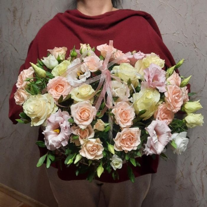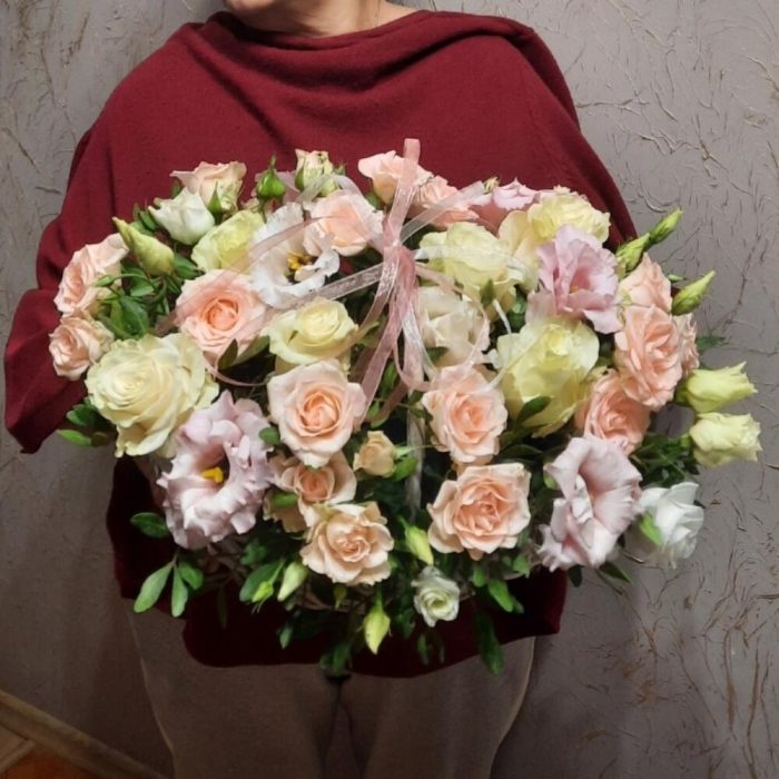 Гвоздики, Кустовые розы, Лизиантусы, Пионовидные розы, Розы