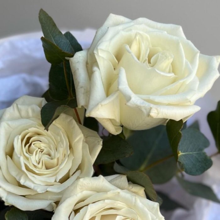 Милый мини букет из 3 белых роз и эвкалипта