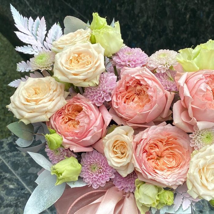Кустовые розы, Лизиантусы, Пионы, Розы, Хризантемы