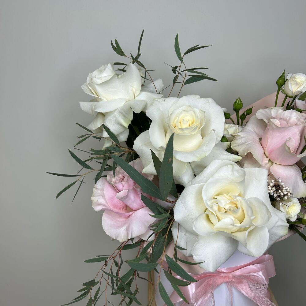Альстромерии, Гвоздики, Кустовые розы, Лизиантусы, Розы, Хризантемы