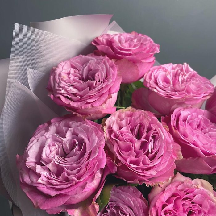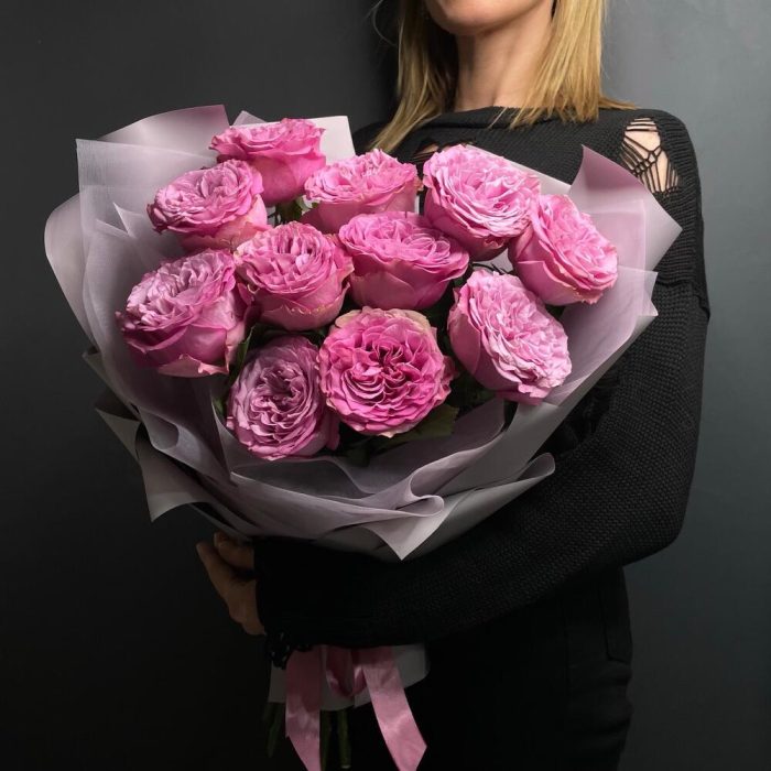 Упаковка дизайнерская – 1 шт.Роза пионовидная розовая – 11 шт.