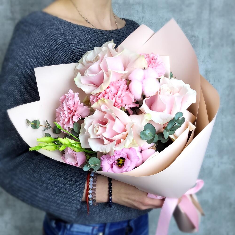 Категории: Гвоздики, Лизиантусы, Розы