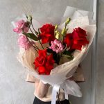Яркий букет с французскими розами и махровым лизиантусом.Профессиональные флористы соберут для вас уникальный, стильный букет или цветочную композицию. Добавят к цветам открытку, инструкцию по уходу за цветами, chrysal. Бережно упакуют цветы в красивую, транспортировочную … Показать ещёупаковку. Курьеры быстро и бережно доставят заказ адресату.